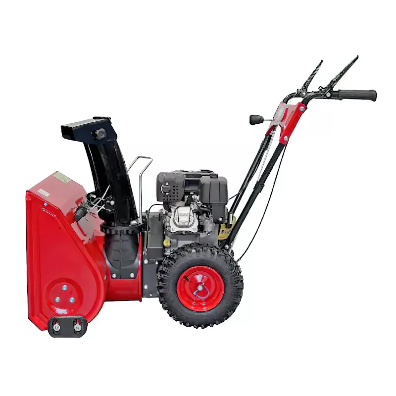 Бензиновый снегоочиститель относится к машинам самоходного типа, а потому вам не придется прикладывать физическое усилие, чтобы перемещать его по участку. На выбор есть 4 скорости вперед, что позволит подобрать комфортный темп работы. Помимо этого, предусмотрен задний ход, который облегчает разворот техники на узких дорожках.