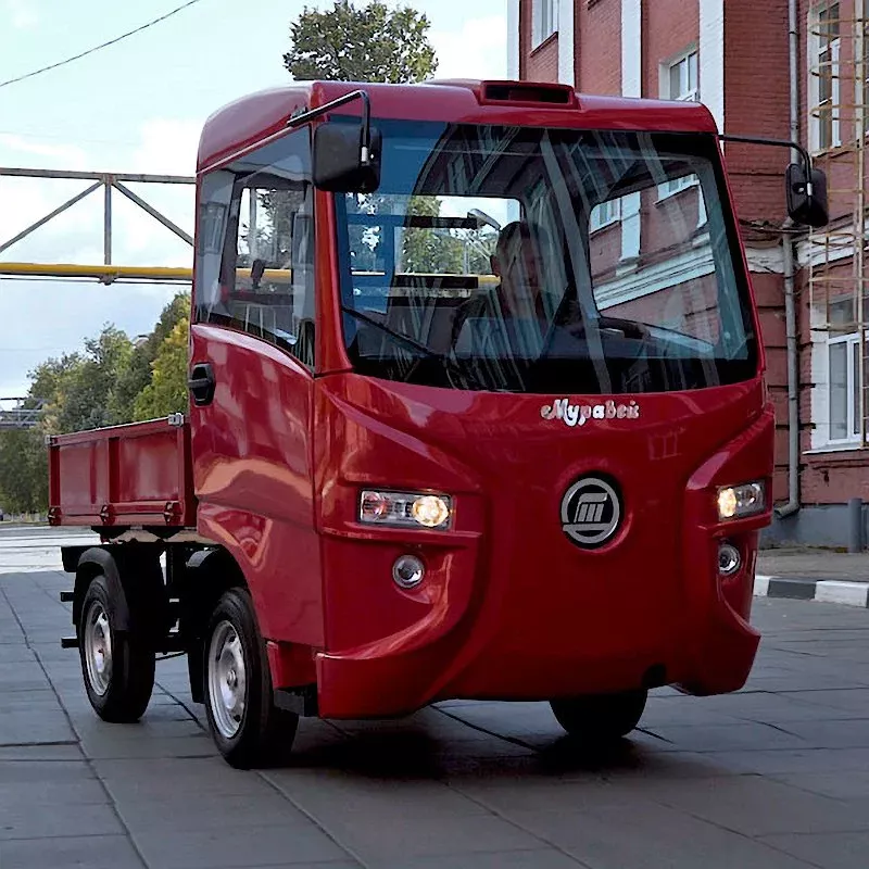 Электромобиль «Муравей» - это российская разработка, выпускаемая на ПО «Туламашзавод». Предназначен для осуществления перевозок людей по территории предприятий, парков, строительных участков, а также для транспортировки грузов. Современный двигатель и батареи повышенной емкости позволяют перемещаться на расстояние до 90 км на одном заряде с максимальной скоростью 20 км/ч. Крытая кабина водителя позволяет работать при любых погодных условиях.