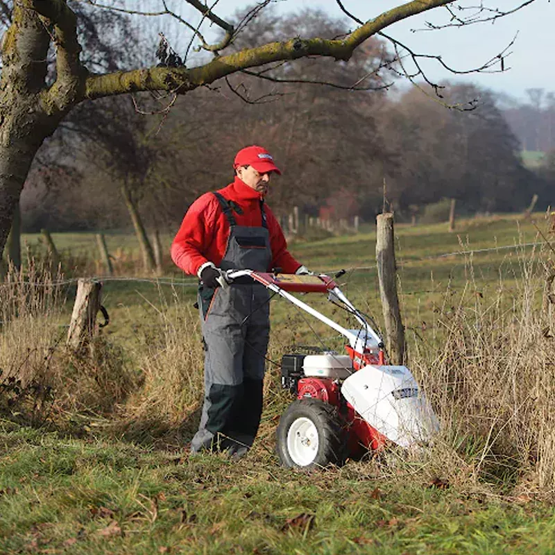 Имеет привод на колесах, поэтому отличается самоходным принципом перемещения. Ширина рабочего полотна составляет 71 см. Бензиновый 4-х тактный двигатель Honda GC160 обеспечивает производительность 2000 кв.м/ч. Конструкция сенокосилки отличается индивидуальной регулировкой положения рукоятки, поэтому агрегатом удобно работать. Косилочный механизм имеет защитную блокировку. Модель оснащена плавной регулировкой высоты скашивания.
