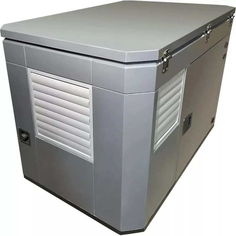Кожух 1600 RAL 7024 предназначен для использования электростанций до 20 кВт круглый год, с помощью регулировки температуры и обеспечивает утепление генератора с помощью электрического подогревателя и охлаждение посредством промышленного вентилятора.