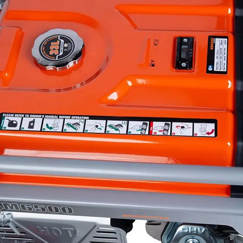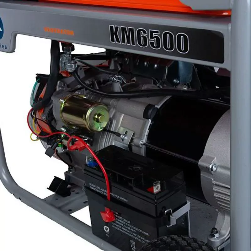 Бензиновый генератор TOR KM6500H 5,0 кВт 220В 33 л. с кнопкой запуска и колесами представляет собой удобный и надежный вспомогательный источник электроэнергии. При правильном обслуживании устройство обеспечивает высокое качество выходного тока.