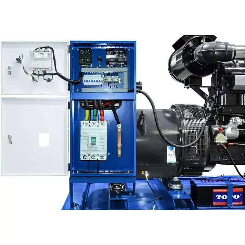 Дизельный генератор ТСС АД-250С-Т400-1РМ16 состоит из дизельного двигателя, синхронного генератора, радиатора охлаждения и стальной рамы с встроенным топливным баком. Дизельный генератор полностью укомплектован всеми необходимыми техническими жидкостями и готов к работе сразу после подключения к нагрузке. Дизельный генератор проходит строгий контроль качества и испытывается на полную мощность в течение двух часов перед отгрузкой.