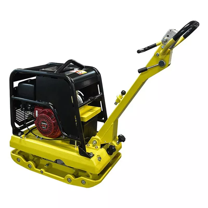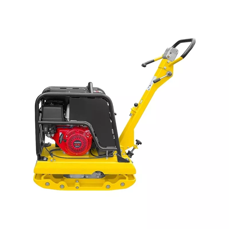 Реверсивная бензиновая виброплита массой 350 кг работает на бензиновом четырехтактном двигателе Honda GX390 мощностью 13 л.с. За счет электрического стартера с аккумуляторной батареей, устойчивой к вибрациям и тяжелым условиям эксплуатации, двигатель заводится простым поворотом ключа зажигания. Производительность машины составляет 480–650 м2/ч.