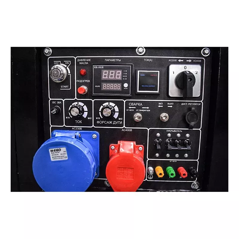 • Многофункциональный Дисплей отображает все основные параметры работы генератора: Силу Тока, Нагрузку, Напряжение, Частоту Тока, и Отработанные Мото-часы для своевременного технического обслуживания.