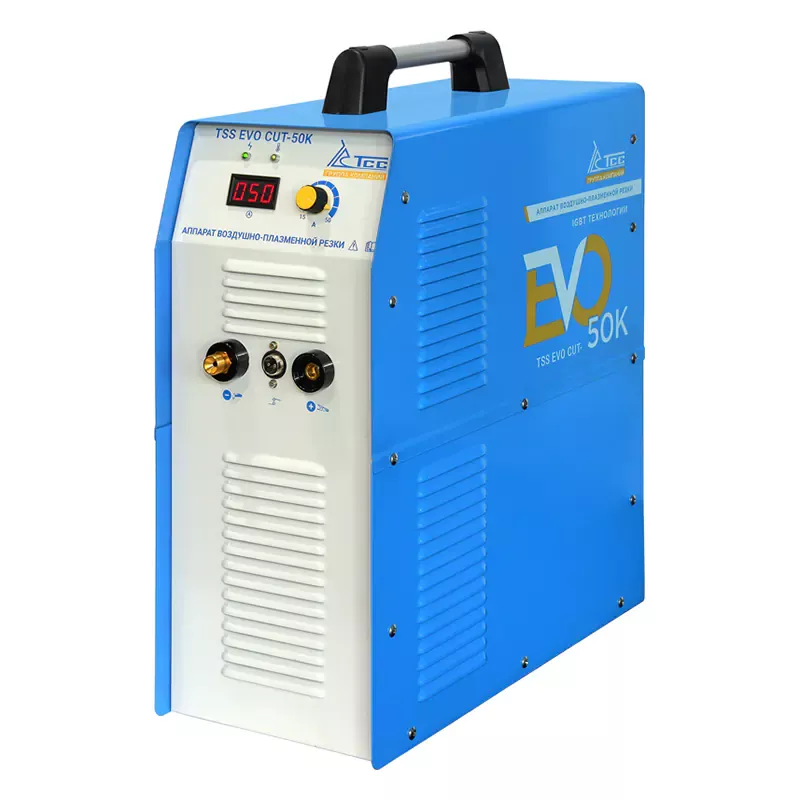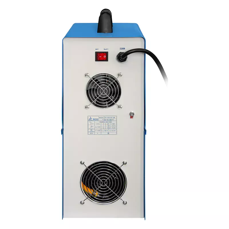 Корпус аппарата плазменной резки ТСС EVO CUT-50K выполнен из прочной 1,5-миллиметровой стали, обеспечивающей прочность и надежность конструкции. Для эффективного охлаждения используются мощные вентиляторы. Благодаря применению инвертора продолжительность включения при максимальном токе достигает 60 %.