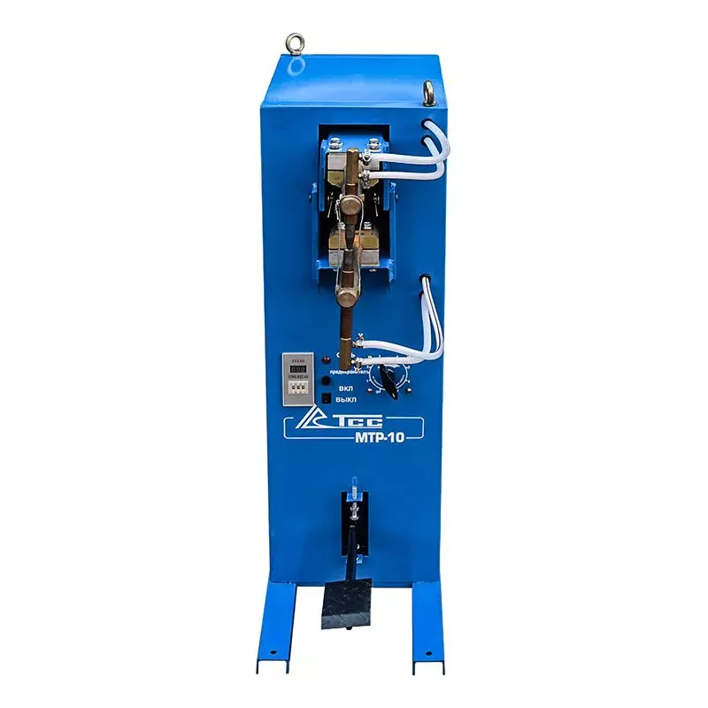 На корпусе аппарата точечной сварки ТСС МТР-10 размещены такелажные петли. Они нужны для крепления модели к грузоподъемному оборудованию. Например, во время первого размещения в рабочем помещении или при необходимости переустановки.