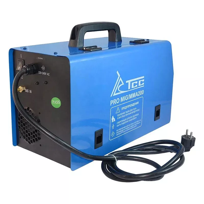 Аппарат инверторного типа TSS PRO MIG/MMA-200 для полуавтоматической сварки в среде защитного газа (MIG/MAG), сварки порошковой проволокой (FCAW) и ручной дуговой сварки (ММА).