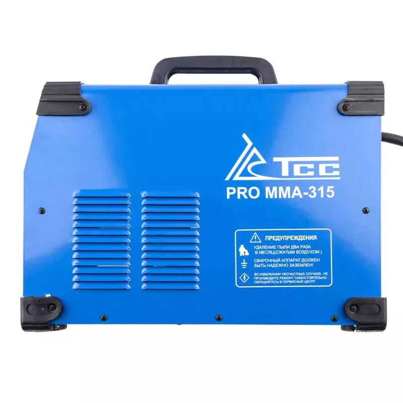 Инвертор ТСС PRO MMA-315 имеет небольшой размер, весит 12,7 кг, поэтому удобен для работ на выездах. Металлический корпус с пластиковыми бамперами устойчив к механическим повреждениям. Для переноски предусмотрена широкая рукоятка удобная для захвата даже в толстых крагах.