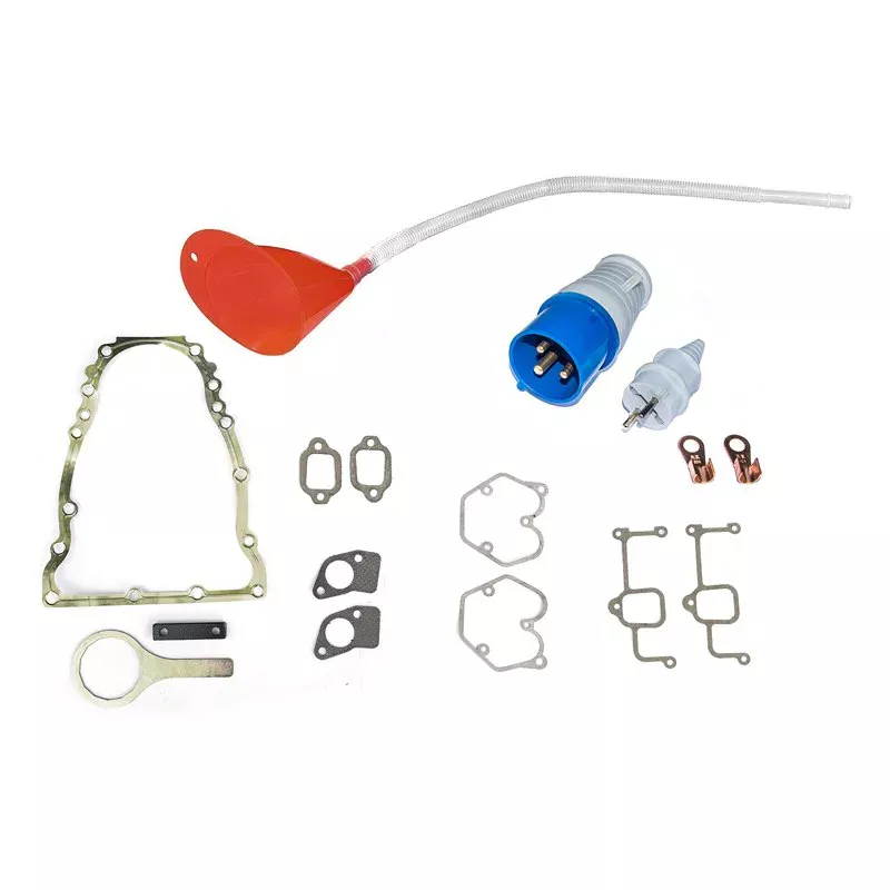 В панели управления электростанцией также установлены счетчик моточасов, для однофазных станций три розетки, одна из которых на 32А, две на 16А, выход питания постоянного тока 12 В и клемма заземления;