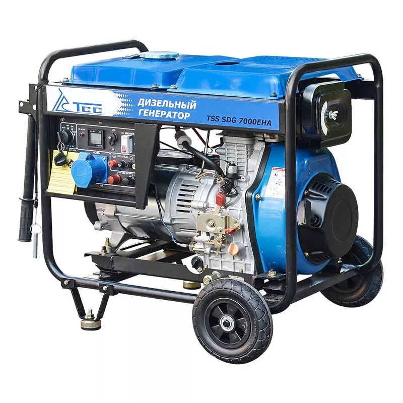 Дизельный генератор TSS SDG 7000EHA предназначен для резервного энергоснабжения бытовых приборов и электроинструмента в частном доме, на даче, в кемпинге. Передвижная электростанция с максимальной мощностью 7 кВт может служить главным источником питания объектов уличной торговли или малого строительства.