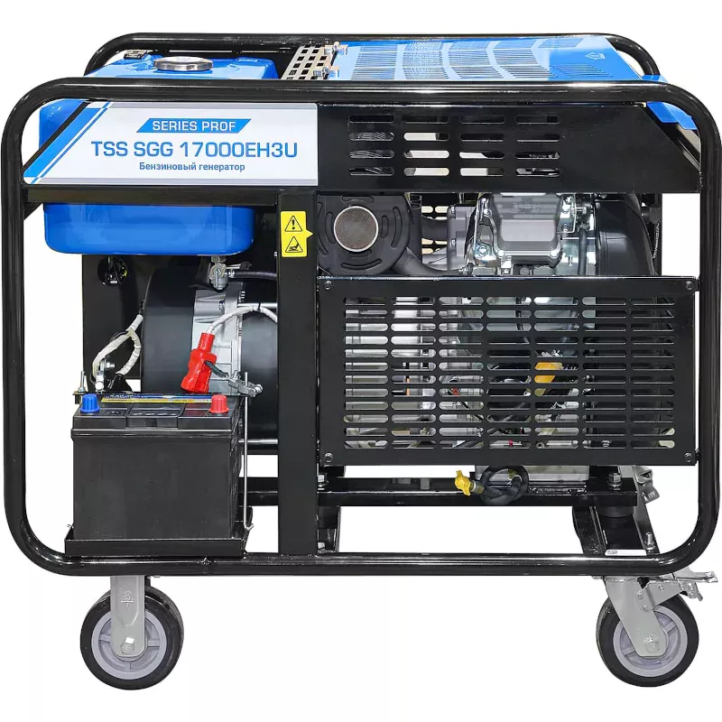 Время непрерывной работы при 75%-й нагрузке составляет 7 часов. На многофункциональном дисплее отображаются такие показатели, как напряжение, частота, сила тока и моточасы. Благодаря электростартеру и аккумуляторной батарее большой емкости 45 Ач бензиновый генератор ТСС заводится поворотом ключа в замке зажигания.