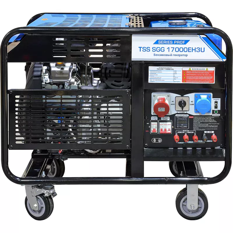 Бензогенератор ТСС SGG 17000EH3U служит автономным источником резервного питания для электрооборудования. Находит широкое применение на ремонтно-строительных, производственных или жилых объектах, где отсутствует постоянное электроснабжение. Для удобства эксплуатации электростанция оборудована переключателем между однофазным и трехфазным током. В обоих режимах работы номинальная мощность составляет 15,5 кВт. Устройство оснащено вместительным баком емкостью 40 л с индикатором уровня топлива.