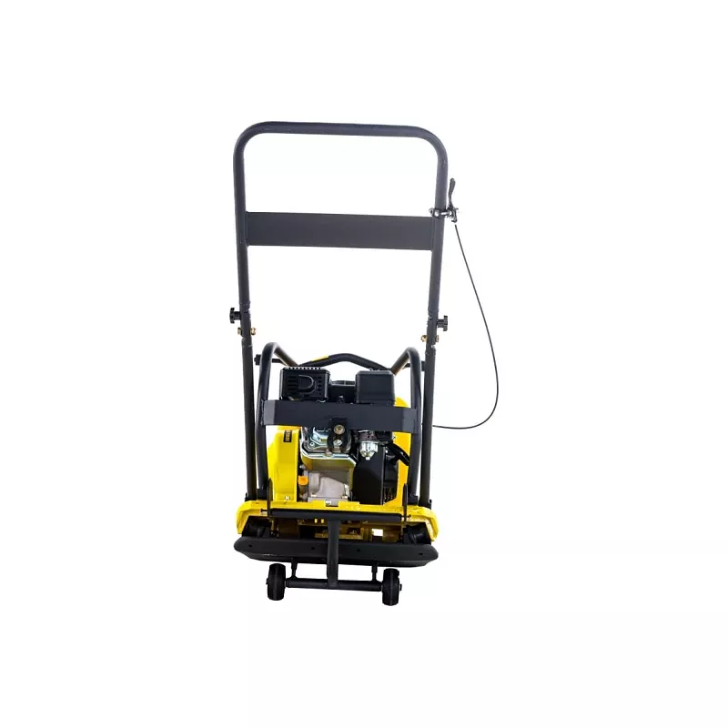 Одноходовая бензиновая виброплита движется со средней рабочей скоростью 24 м/мин. Рукоятка позволяет поворачивать и направлять устройство в нужную сторону. Данная модель оснащена рычагом газа для плавного переключения между холостым ходом и максимальными оборотами двигателя. В режиме увлажнения вода подается через разбрызгивающую трубку на уплотняемую поверхность непосредственно перед подошвой. Топлива в баке емкостью 3,6 л хватает приблизительно на 2 часа работы.