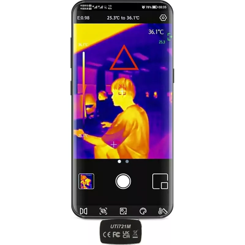 UTi721M — это профессиональный тепловизионный модуль для смартфонов, компактный и простой в эксплуатации благодаря подключению к мобильным телефонам. Его ИК-разрешение 256х192 обеспечивает четкое изображение с быстрым откликом. С помощью этого тепловизионного модуля пользователи могут быстрее и проще устранять проблемы с HVAC или исследовать проблемы с источниками тепла в доме и скрытые проблемы. Это идеальный инструмент для домовладельцев, любителей активного отдыха, инженеров, подрядчиков, строителей и т. д.