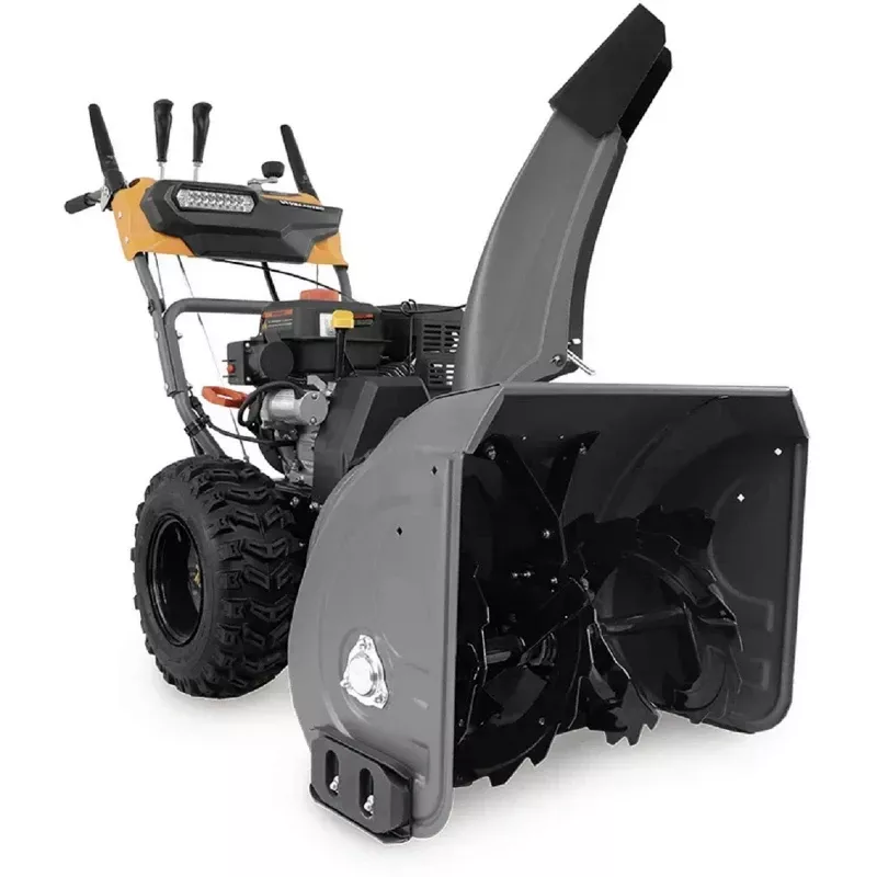 Агрессивный стальной шнек справится с любым снегом и наледью, а срезные болты защитят редуктор от повреждения. Ковш изготовлен из высокопрочной стали толщиной 2 мм усиленный ребрами и покрыт защитным порошковой краской. Большой диаметр импеллера существенно увеличивает производительность снегоуборщика.