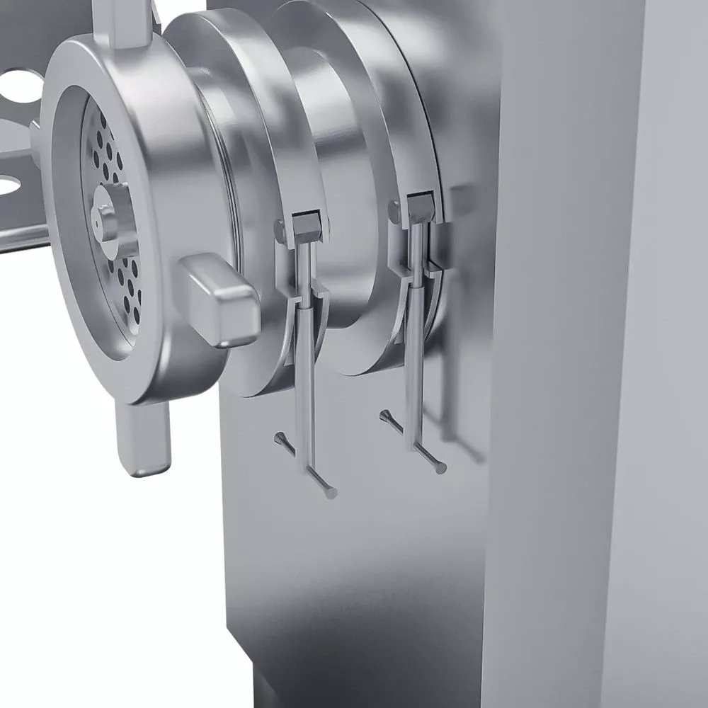 Волчек JR-120 может измельчать замороженное мясо с температурой до -10С, предварительно разрезанное на пиле или блокорезке до необходимых размеров (не более 50 мм). JR-120 надежен, прост в обслуживании и эксплуатации. На данной модели установлены самозатачивающиеся ножи, что значительно упрощает обслуживание и увеличивает срок службы ножевого комплекта.