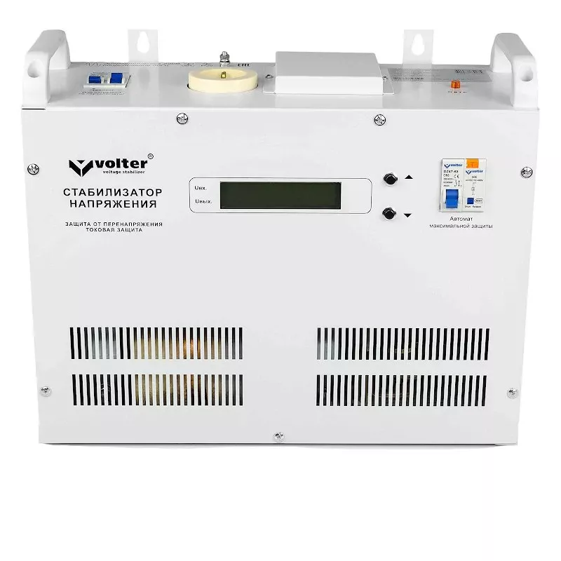 Стабилизатор напряжения Volter СНПТО 14 ПТСШ необходим для защиты чувствительного оборудования от поломок из-за перепадов напряжения. Охлаждение производится через отверстия в корпусе: через них удаляются излишки горячего воздуха. На передней панели устройства есть цифровой экран, на который выводится вся текущая информация о рабочих параметрах. Подключить к стабилизатору защищаемую технику очень просто с помощью встроенной в корпус обычной розетки.