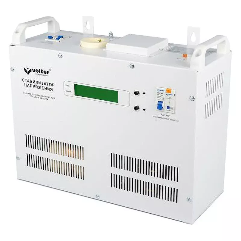 Стабилизатор напряжения Volter СНПТО 5,5 С контролирует значение напряжения как на входе, так и на выходе. Вентиляционные отверстия служат для отвода тепла, чтобы устройство не перегрелось. При необходимости переместить стабилизатор очень просто, используя 2 ручки в верхней части устройства.