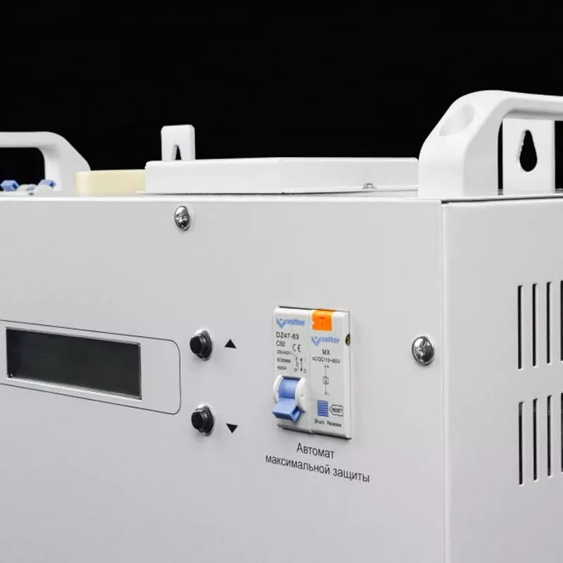 Если вам понадобится подключить потребитель без нагрузки на стабилизатор, то используется функция “Байпас”. Это пригодится, например, при работе со сварочным оборудованием с большим потреблением тока. В этом случае нужная техника будет напрямую подключена к электросети, что продлит срок службы стабилизатора.