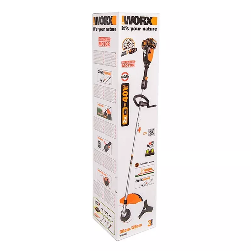 Прочная алюминиевая штанга разбирается для компактного хранения и транспортировки. Триммер поставляется с двумя аккумуляторами емкостью 4 Ач и зарядным устройством. Вы можете использовать их с другим инструментом WORX PowerShare PRO 20V.