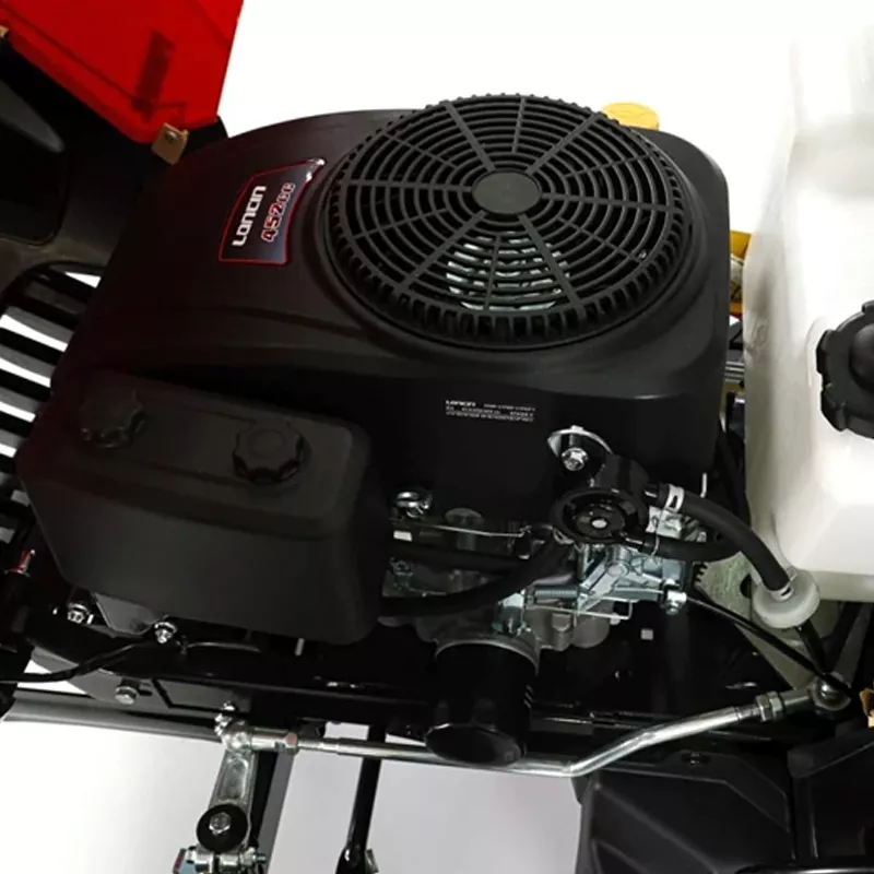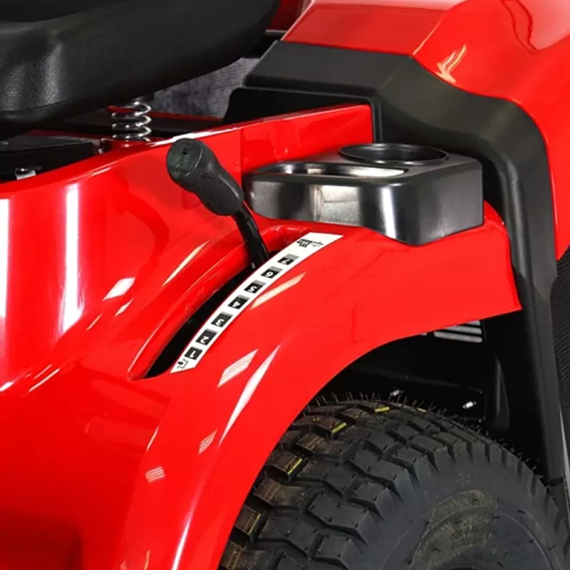 Двигатель легко заводится поворотом ключа в замке зажигания и в целях безопасности автоматически выключается, если оператор покидает рабочее место. Для комфортной работы предусмотрены подстаканники и яркие фары переднего освещения. Откидной капот упрощает техническое обслуживание машины. К специальному штуцеру в деке можно подсоединить садовый шланг для промывки режущего механизма водой.
