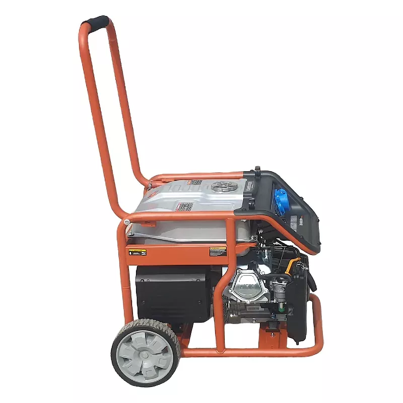 Открытый тип корпуса обеспечивает быстрый доступ к основным узлам, что удобно во время ремонта или технического обслуживания. Для защиты от механических воздействий служит металлическая рама из толстой трубы. В верхней части бензогенератора Zongshen KB 6000 E расположена складная рукоятка с мягкой накладкой. К нижней крепятся колеса и виброгасящие опоры для устойчивого положения аппарата.