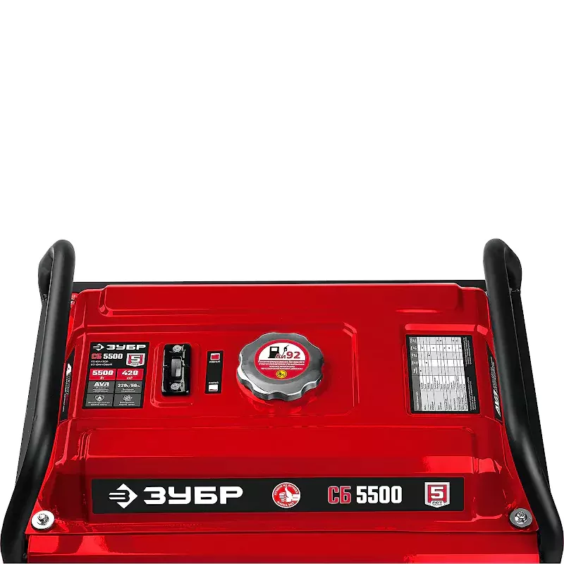 Генератор ЗУБР СБ-5500 смонтирован на прочной металлической раме с ручками для переноски. Открытая конструкция обеспечивает эффективный отвод тепла, а также лучший контроль за состоянием рабочих элементов.