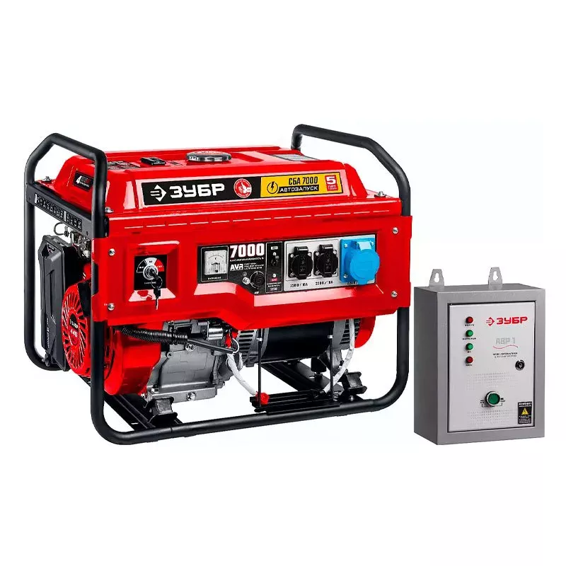 Бензиновый электрогенератор ЗУБР СБА-7000, предназначен для обеспечения электрической энергией потребителей в отсутствии электрической сети, а также для использования в качестве резервного или аварийного источника электрической энергии. Мощный генератор, который пригодится не только в загородном доме, но и в мастерской, и на строительной площадке, и вообще везде, где нет стационарного электричества, но нужно иметь работающий приборы и инструмент.