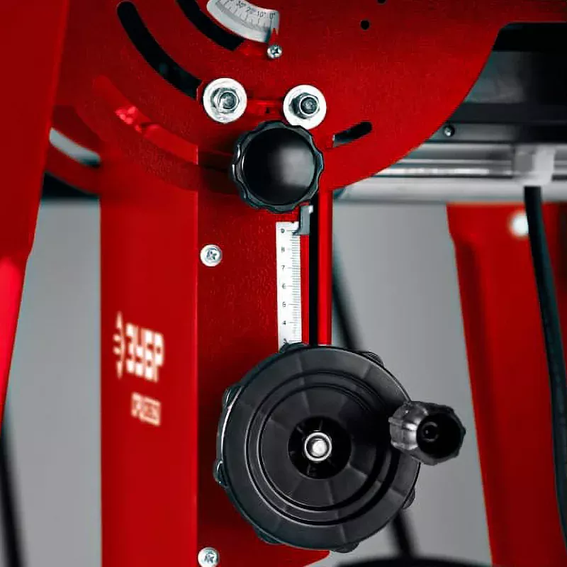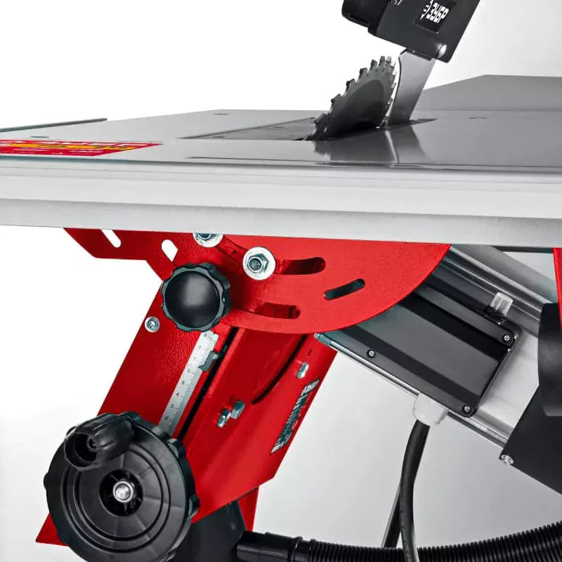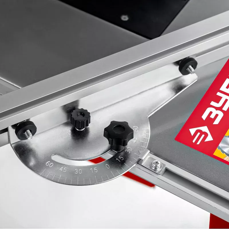 Распиловочный станок комплектуется направляющими для удобства поперечного и продольного распила. Фиксатор углового положения со шкалой позволяет точно отрегулировать наклон диска и глубину пропила. Прочный стол из конструкционного алюминия имеет дополнительную раскладную часть, которую можно устанавливать с разных сторон.