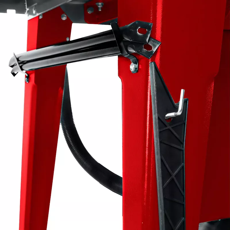 Подвижная каретка облегчает подачу материала. На корпусе станка ЗУБР СРЦ-315су МАСТЕР предусмотрены крючки, на которые можно подвесить толкатель или другой инструмент, чтобы все необходимое было всегда под рукой. Для обеспечения комфортной работы станок оборудован патрубком, к которому можно подключить систему пылеудаления. На верхнем защитном кожухе установлено устройство для отвода стружки из зоны пропила.